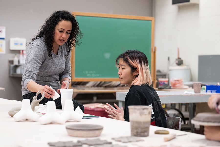 As an art major, you will take a variety of visual art classes in our 70,000-square-foot Fine Arts Building. The fully equipped facility houses graphic design and computer art studios, classrooms, a Media Realization Center, and an art education facility. You will also take art classes in our designated studios for ceramics, drawing, painting, papermaking, photography, printmaking, and sculpture. Our art studios are available to all art majors